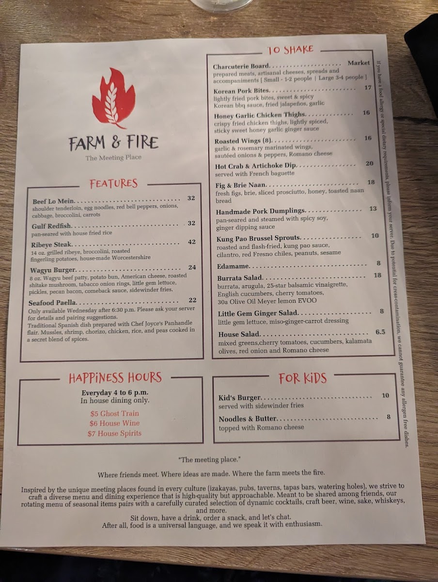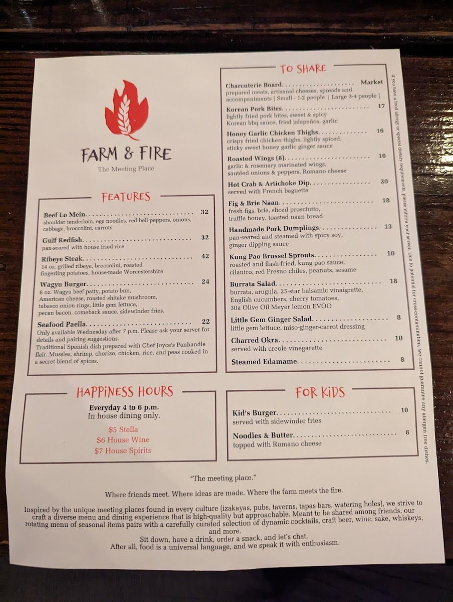 The menu at Farm & Fire offers a thoughtful blend of casual bites and comforting dishes that fit effortlessly into its relaxed, inviting atmosphere. Whether you're stopping by for a leisurely lunch, a casual dinner, or unwinding with drinks at the bar, the selections here balance familiar favorites with a touch of creative flair.