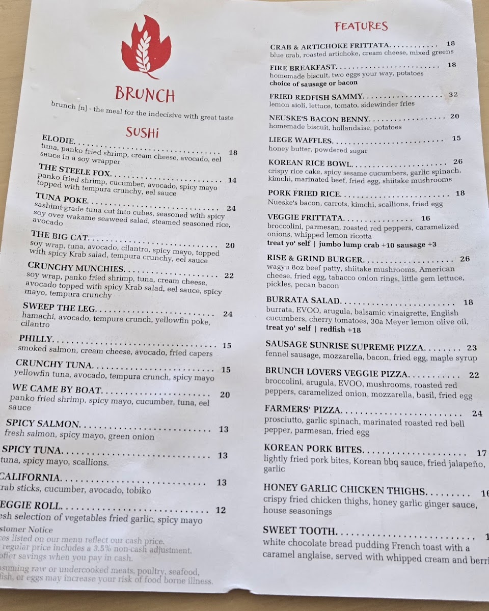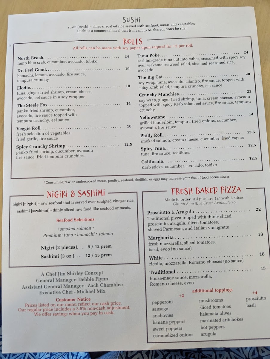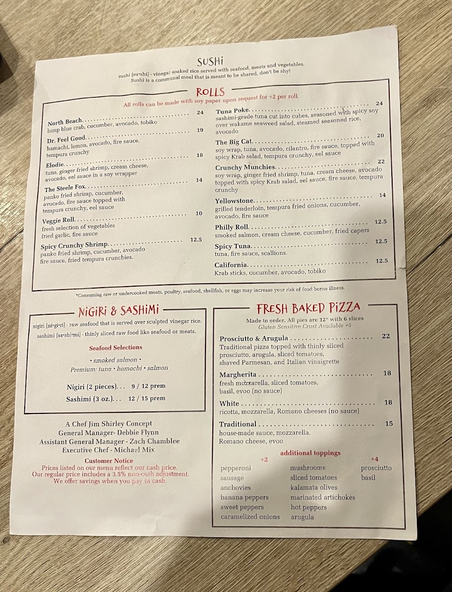 You’ll find a variety of hand-held options like the Pulled Pork Sandwich and Chicken Sandwiches alongside fresh, vibrant salads such as the Burrata Salad and Little Gem Ginger Salad. The pizza selection offers both classic and inventive styles, like the Margherita and White Pizza, perfect for sharing or enjoying solo. For those seeking something a bit different, there are also sushi offerings and flavorful Korean-inspired plates like Korean Pork Bites and a Korean Rice Bowl, adding an unexpected but harmonious dimension to the menu.